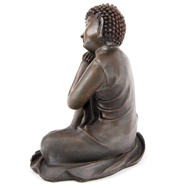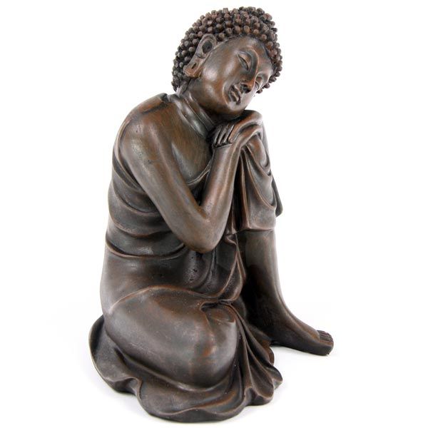 Holzeffekt Thai Buddha, Kopf auf Knie