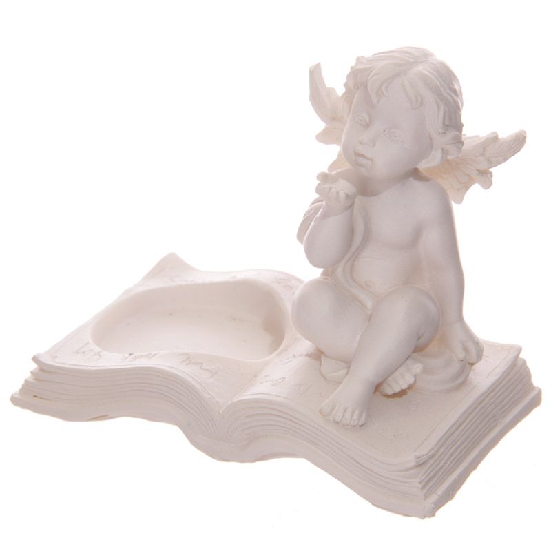 Engelchen sitzend auf Buch Teelichthalter