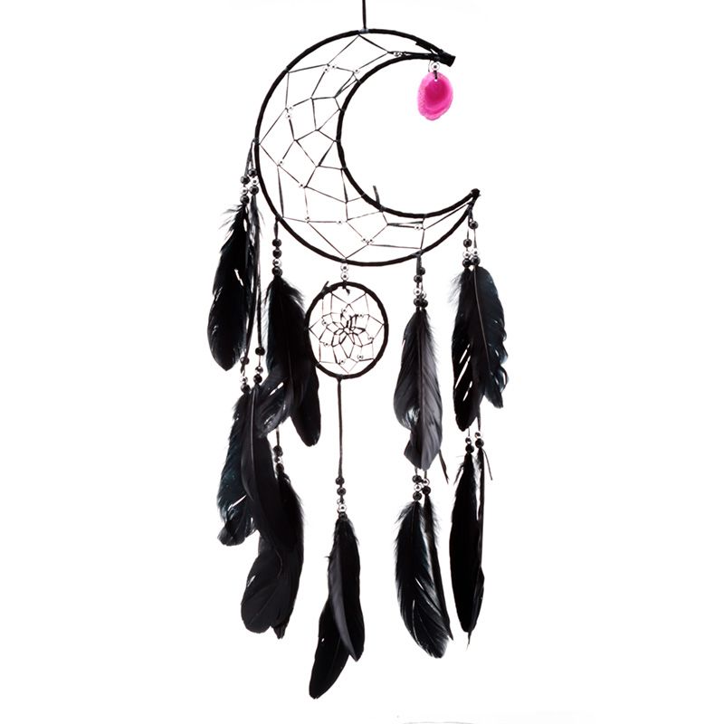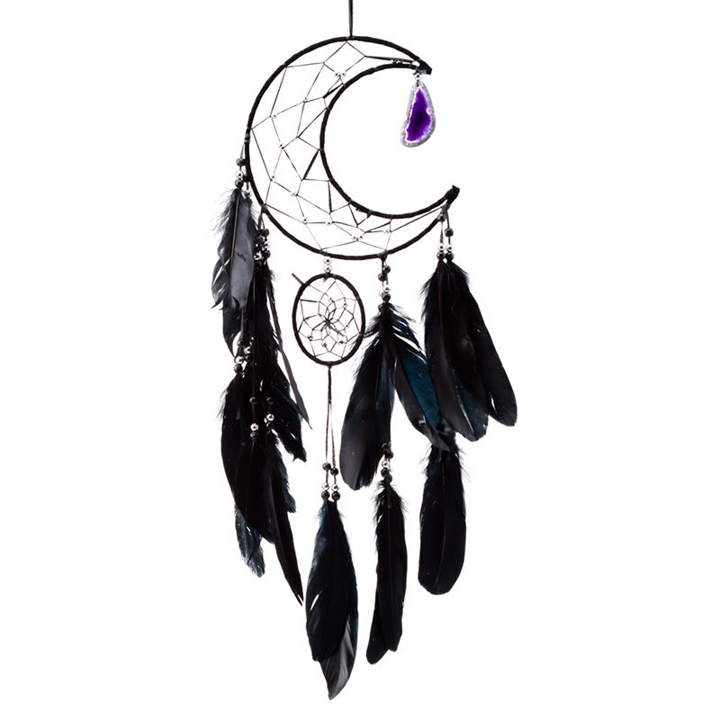 Schwarzer Traumfänger Mondsichel mit Achatanhänger