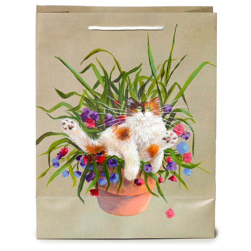 Kim Haskins Blumenkatze im Blumentopf grüne Geschenktasche - (L)
