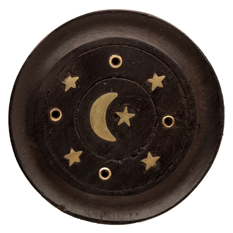 Mangoholz Mond & Sterne Runder Schwarzer Räucherstäbchenhalter
