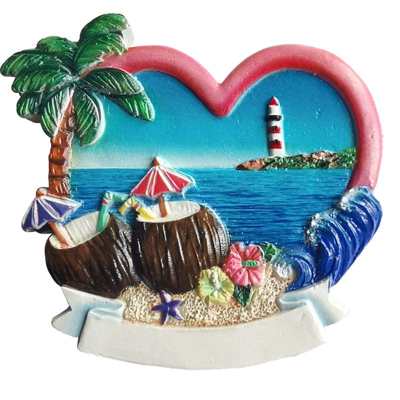 An der Küste 3D Souvenir-Magnet - Herz mit Kokosnuss-Cocktails