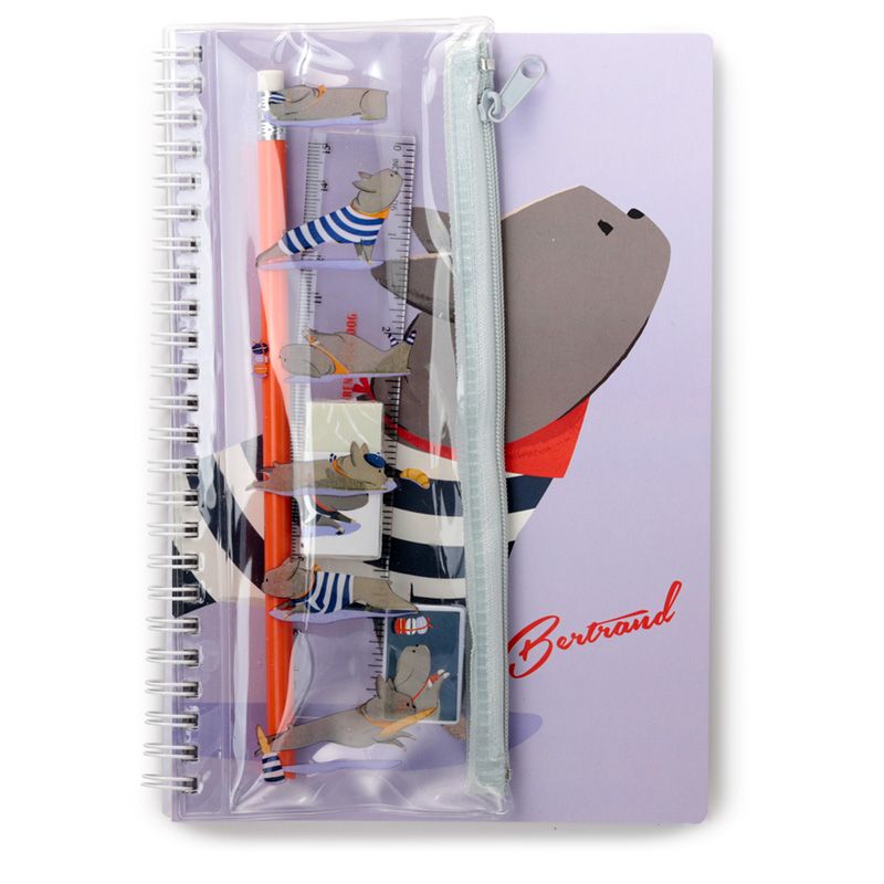 - Set Enthält: Lineal, Bleistift, Radiergummi, Spitzer, Federmäppchen und Notizblock.