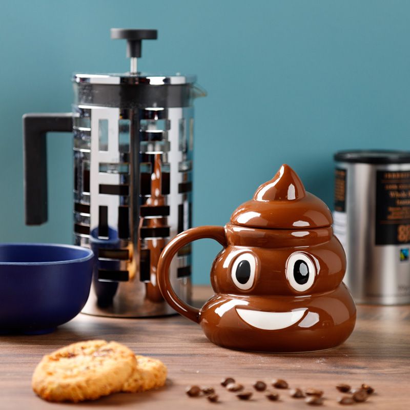 Emotive Kacke geformte Tasse aus Keramik mit Deckel