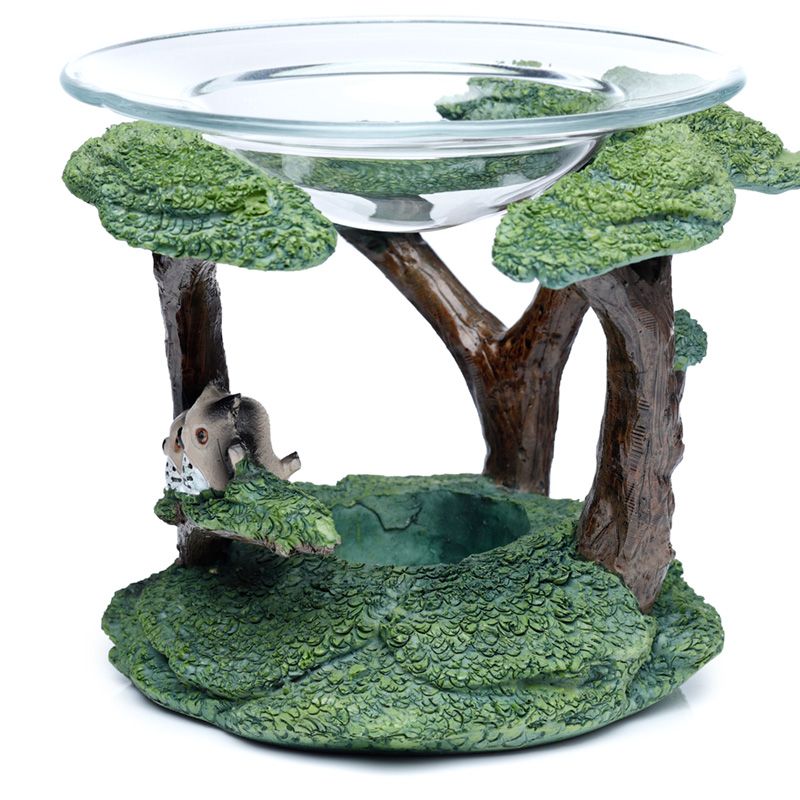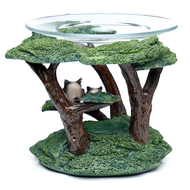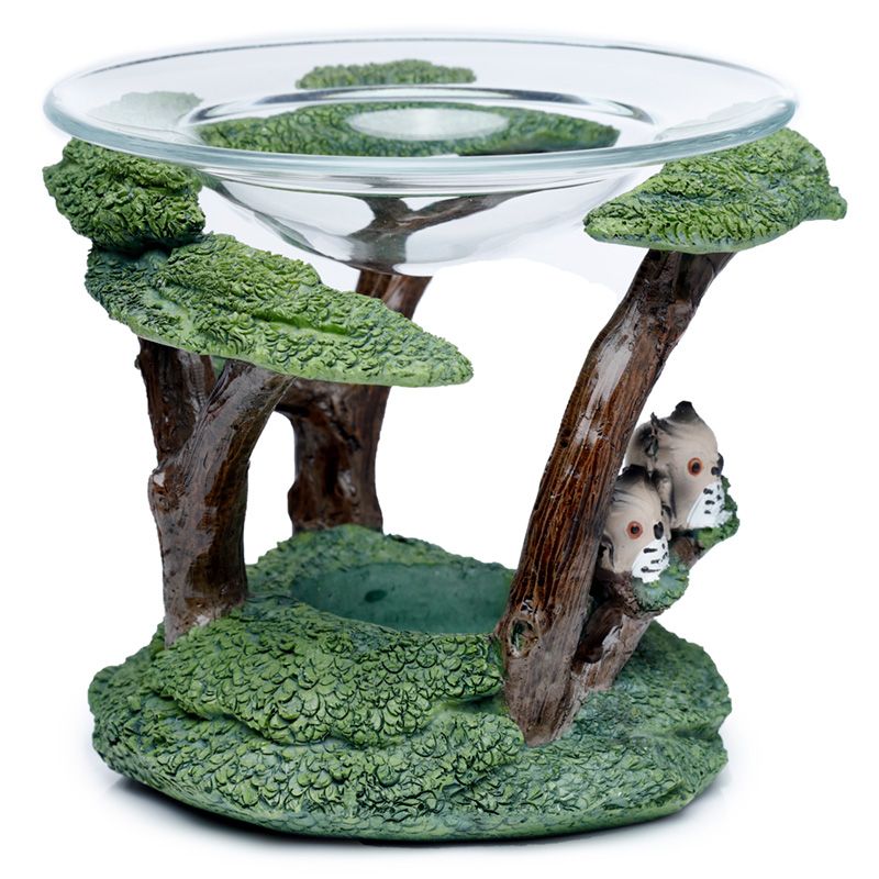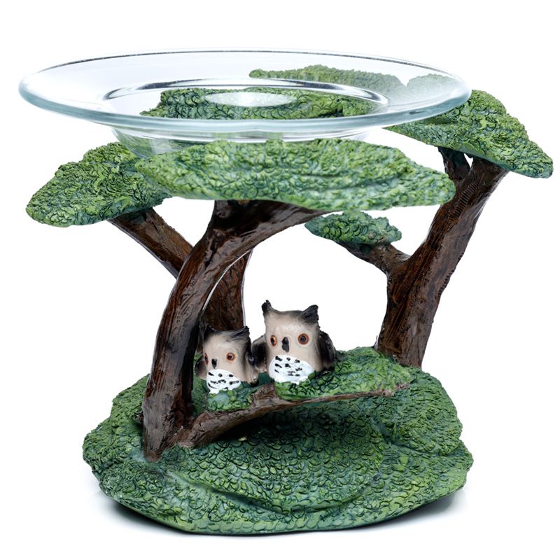 Eulen mit Baum Duftlampe aus Harz mit Glasschale