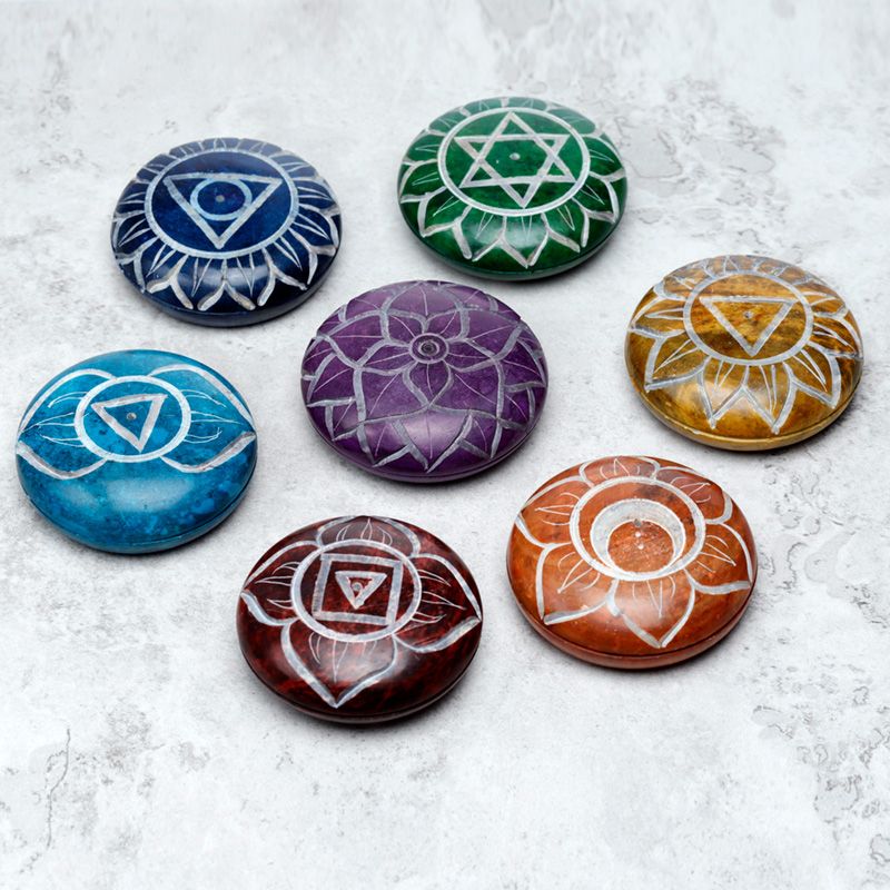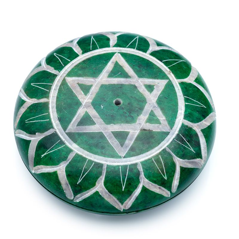 Speckstein Kiesel Räucherbrenner mit geschnitzem Chakra-Symbol